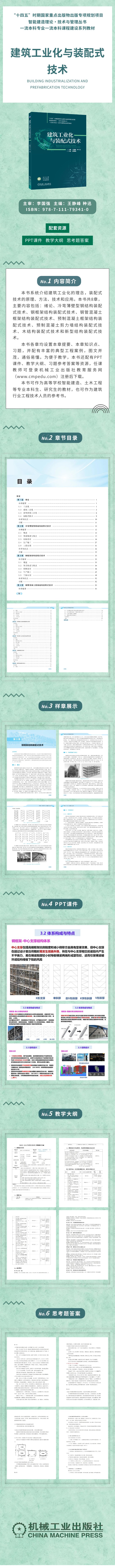 本书系统介绍建筑工业化的理念,装配式技术的原理、方法、技术和应用。本书共8章,主要内容包括:绪论、冷弯薄壁型钢结构装配式技术、钢框架结构装配式技术、钢管混凝土框架结构装配式技术、预制混凝土框架结构装配式技术、预制混凝土剪力墙结构装配式技术、木结构装配式技术和新型结构装配式技术。 本书各章均设置本章提要、本章知识点、习题,并配有丰富的典型工程案例,图文并茂,通俗易懂。为便于教学,本书还配有PPT课件、教学大纲、习题参考答案等资源,任课教师可登录机械工业出版社教育服务网(www.cmpedu.com)注册后下载。 本书可作为高等学校智能建造、土木工程等专业本科生、研究生的教材,也可作为建筑行业工程技术人员的参考书。